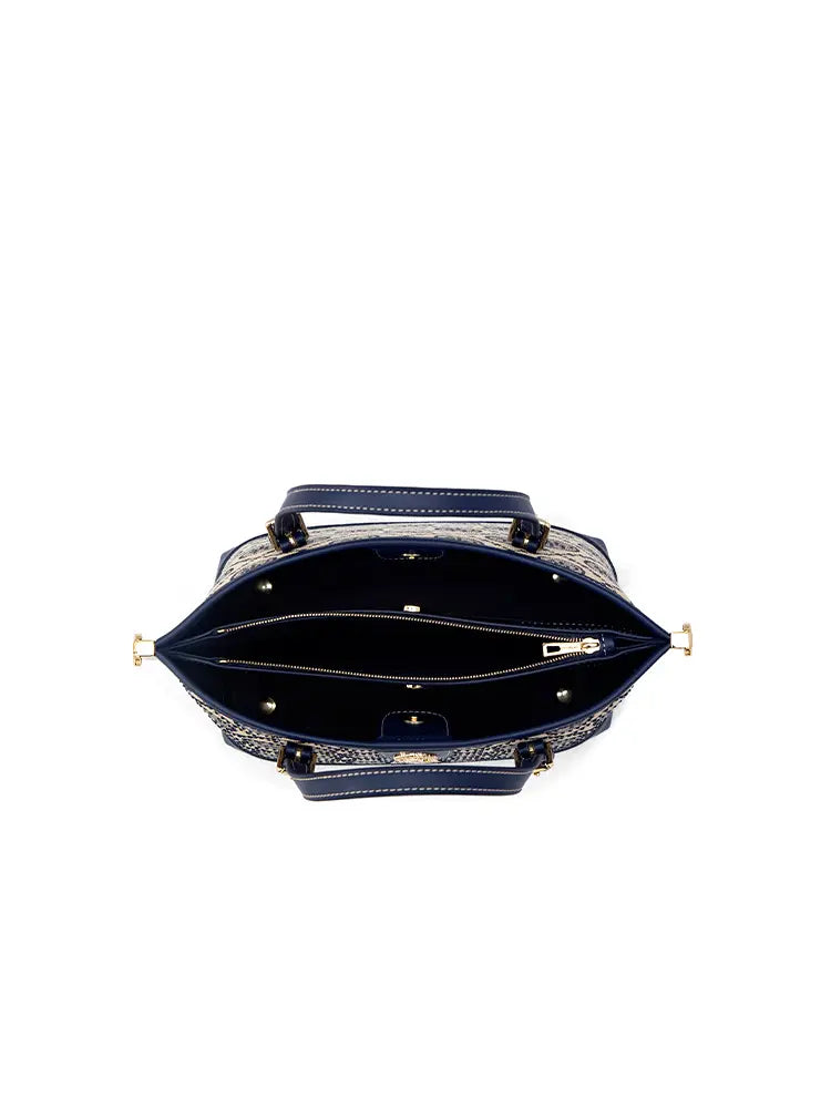 This new mini tote bag features a shimmering jacquard star pattern that brings a hint of glam to its compact, structured design. Crafted with refined detailing and a sturdy top handle, it offers a perfect balance of elegance and practicality. Despite its small size, the interior is thoughtfully designed to hold your daily essentials. Chic and eye-catching, it’s the ideal finishing touch for adding sparkle to your everyday look.