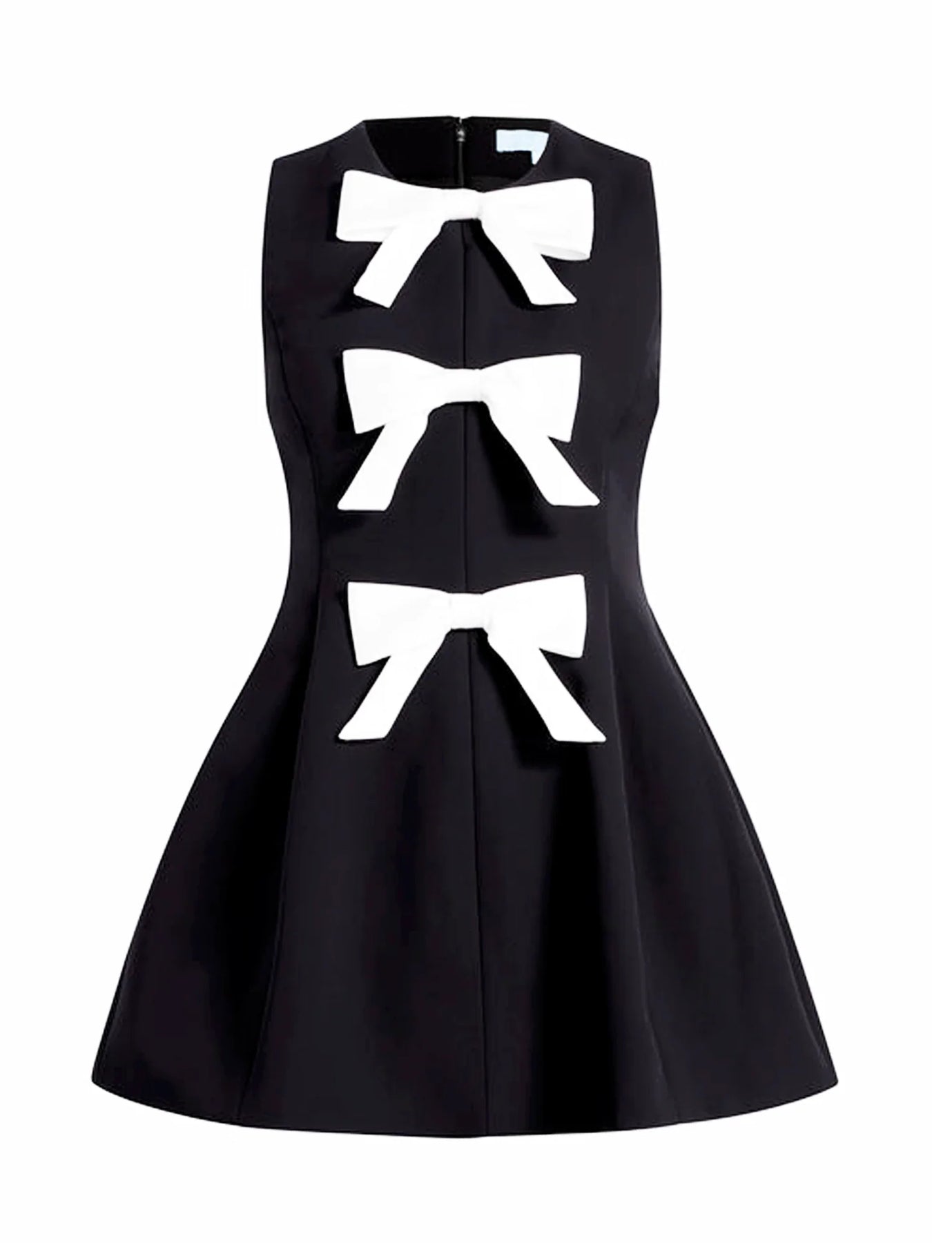 The Silk Bow Charm Mini Dress is a playful yet elegant piece that features a fitted bodice adorned with three delicate silk bows. The tailored bodice cinches at the waist and flares out into a flattering A-line mini skirt, creating a silhouette that is both chic and feminine. Perfect for those who love to combine classic charm with a touch of whimsy, this dress is ideal for making a stylish statement at any event.