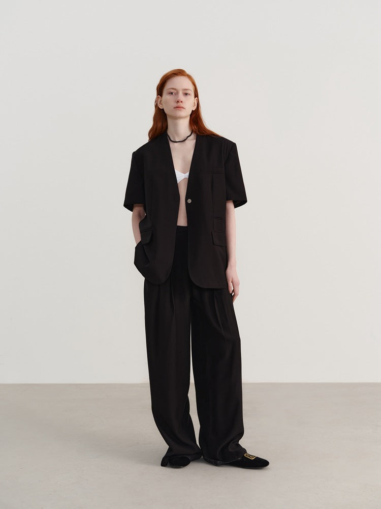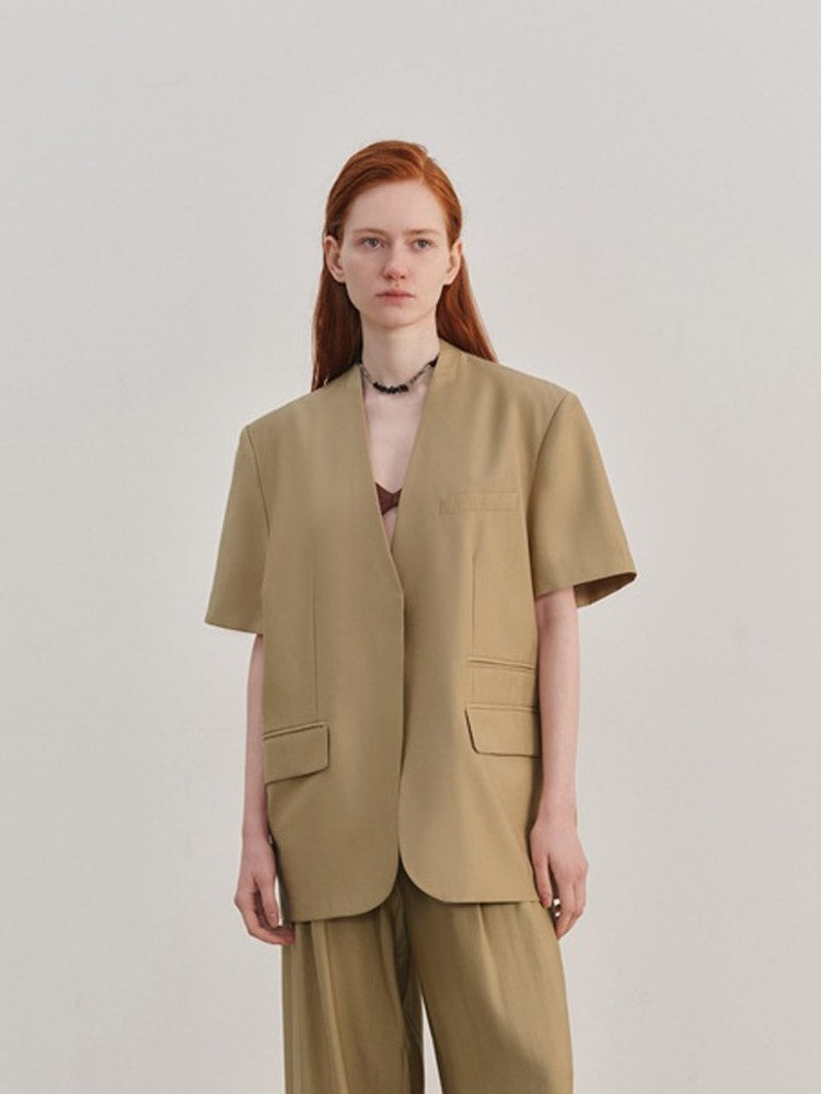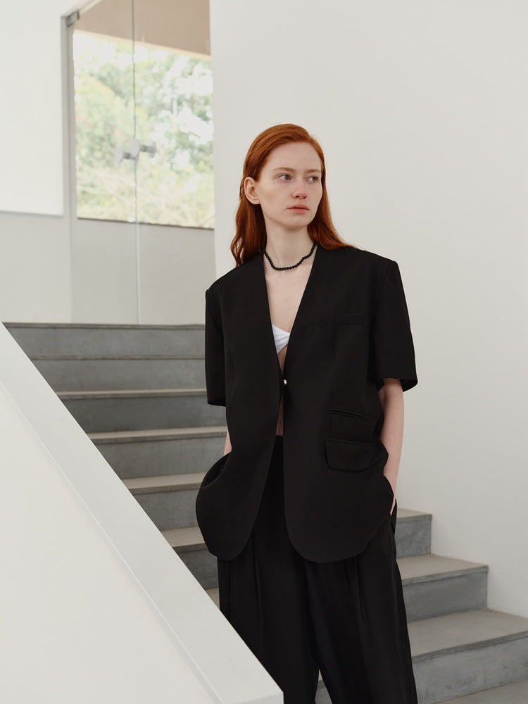 Casual Loose-Fit V-Neck Short Sleeve Blazer