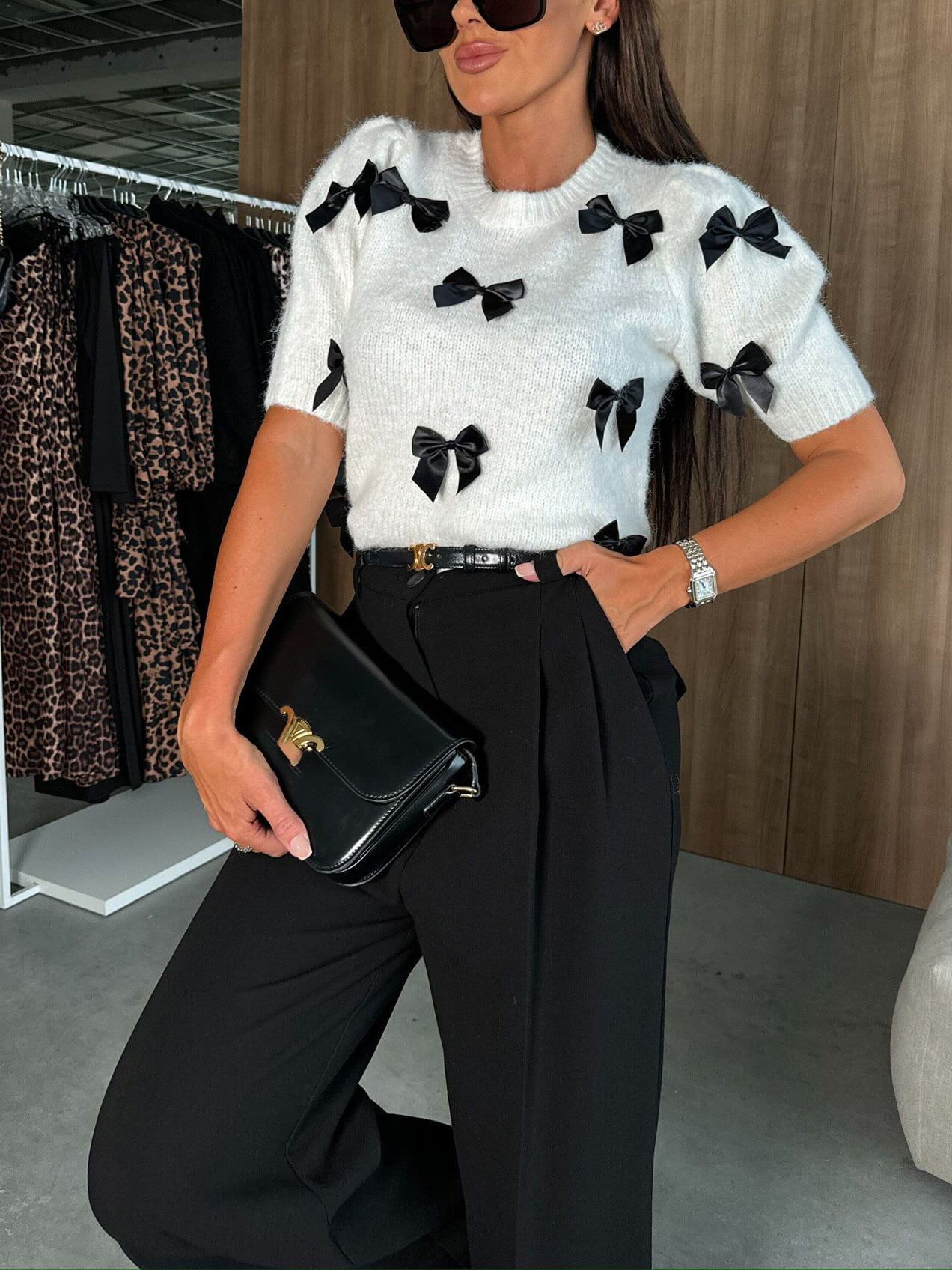 Delicate Bow Short-Sleeved Sweater