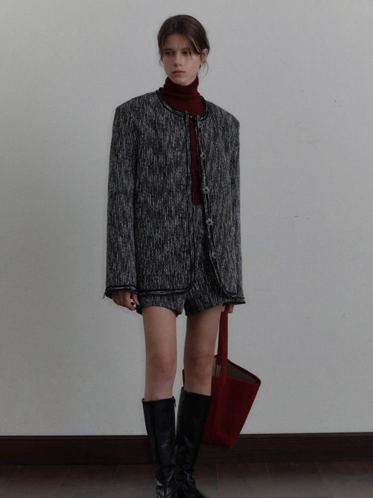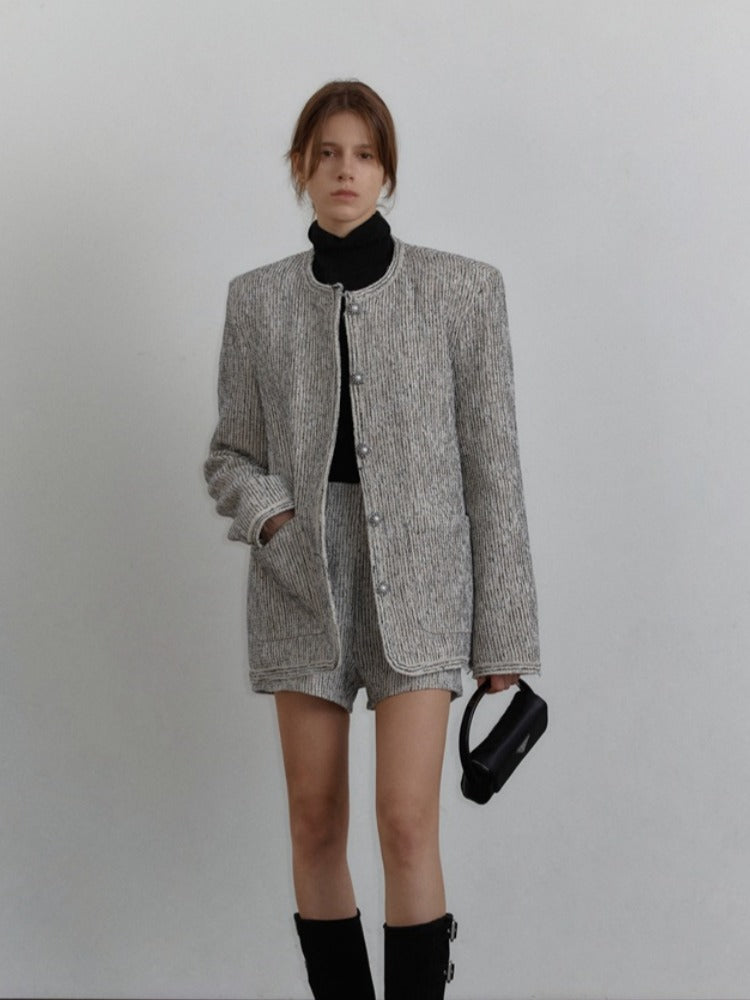 Round Neck Striped Blazer