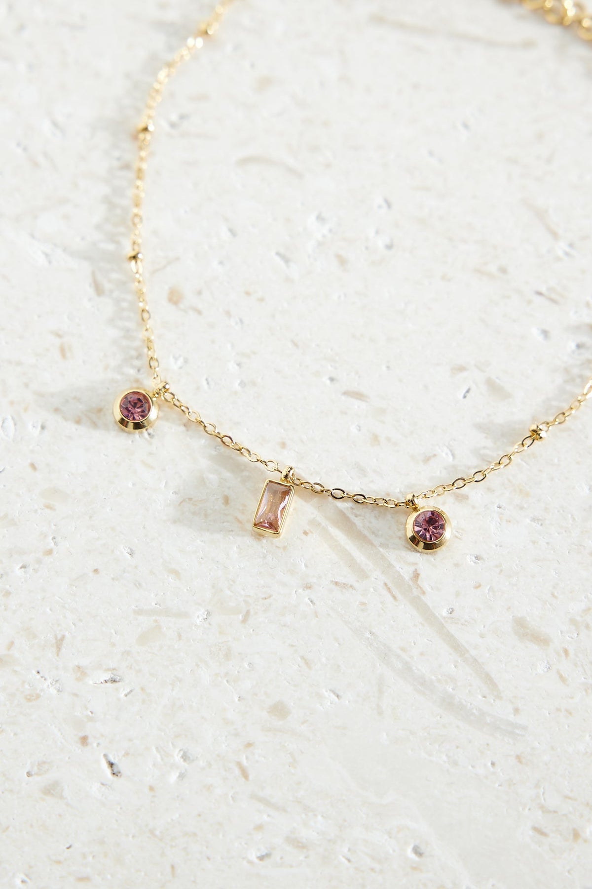 You're a stylish girl that's why you're going to love the 18k Gold Plated Gems For You Bracelet. Featuring a gold chain and pink diamante charms.
