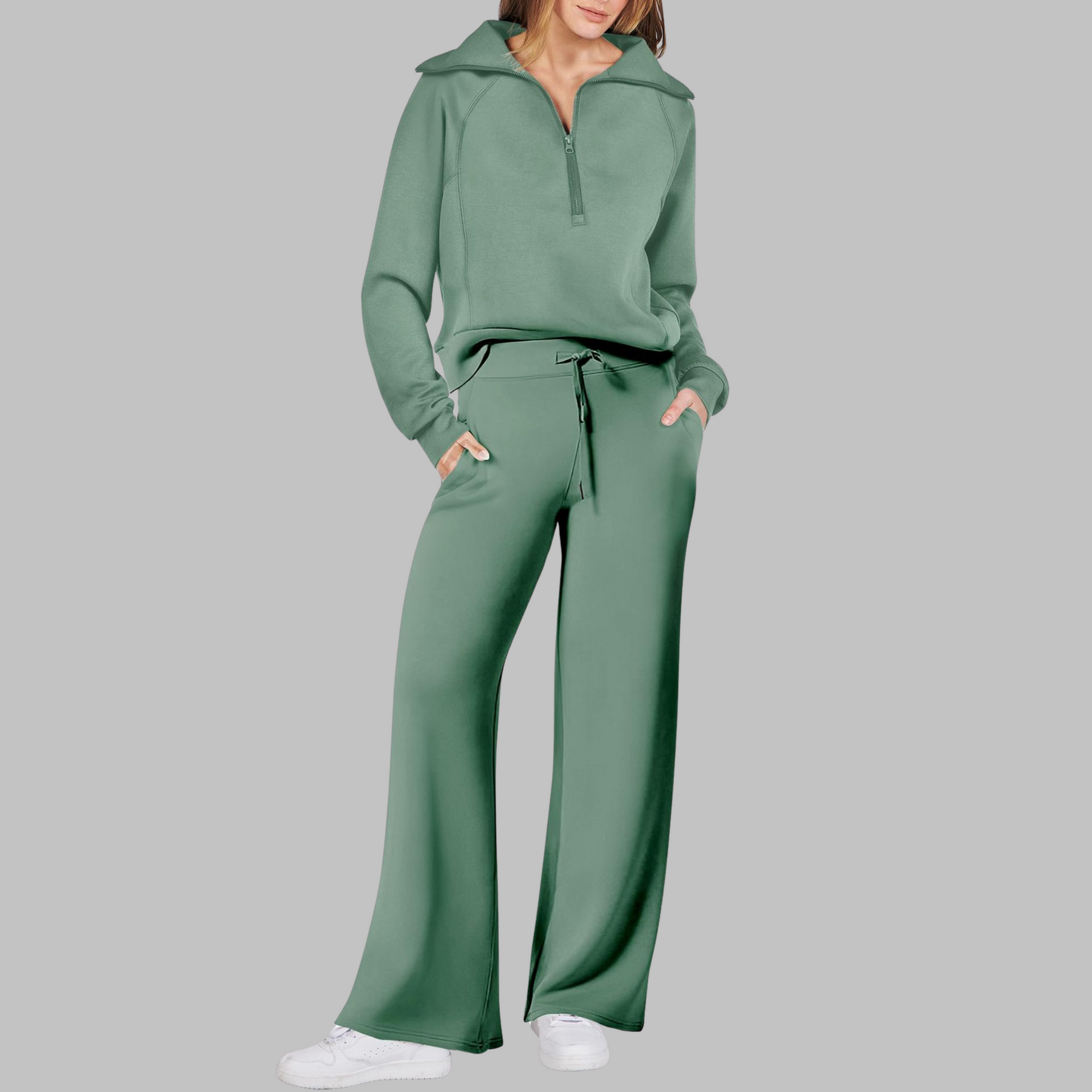 UDAY™ - Comfy Half Zip Sweatshirt and Wide Leg Pants Set