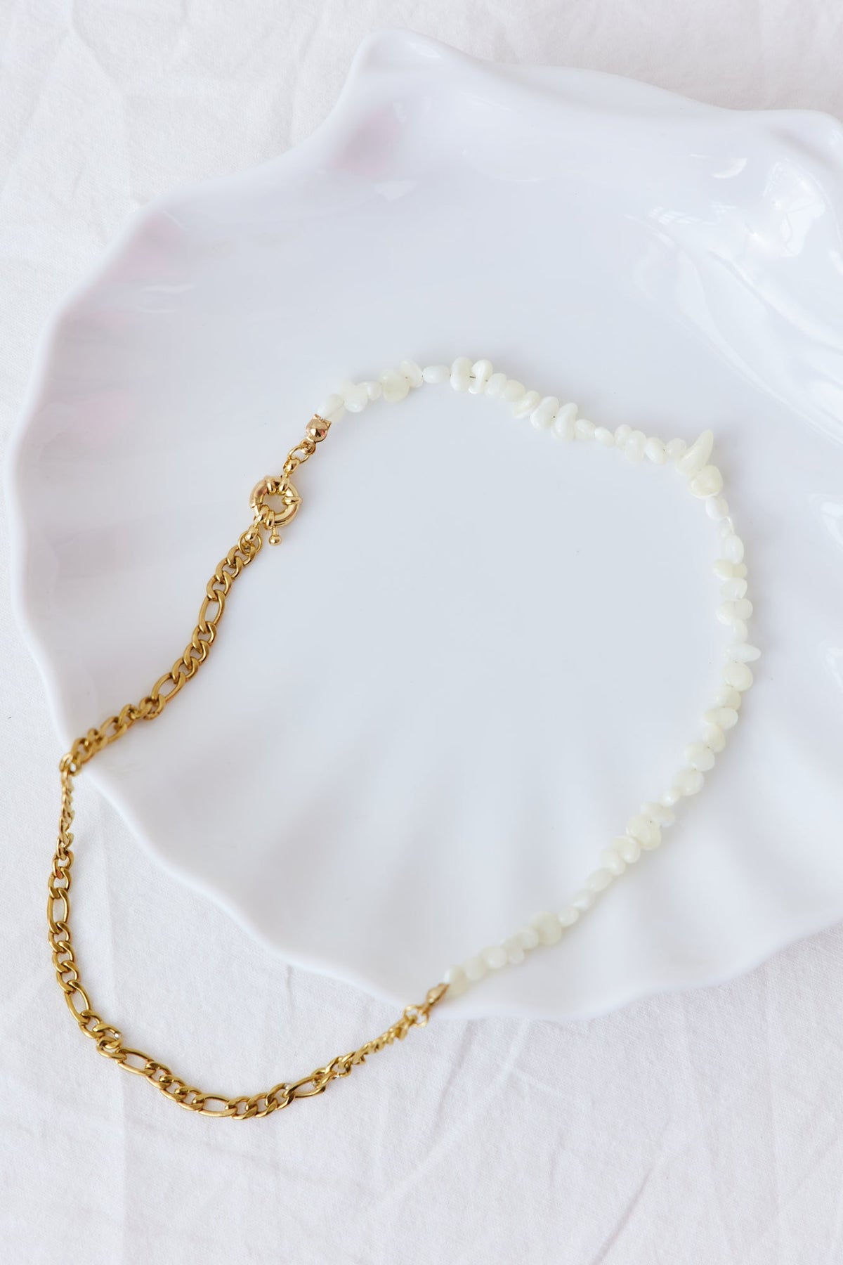 Show off your true Beaming Heart with this adorable necklace. Featuring a unique half gold chain half shell design. Style yours with your next beach maxi!