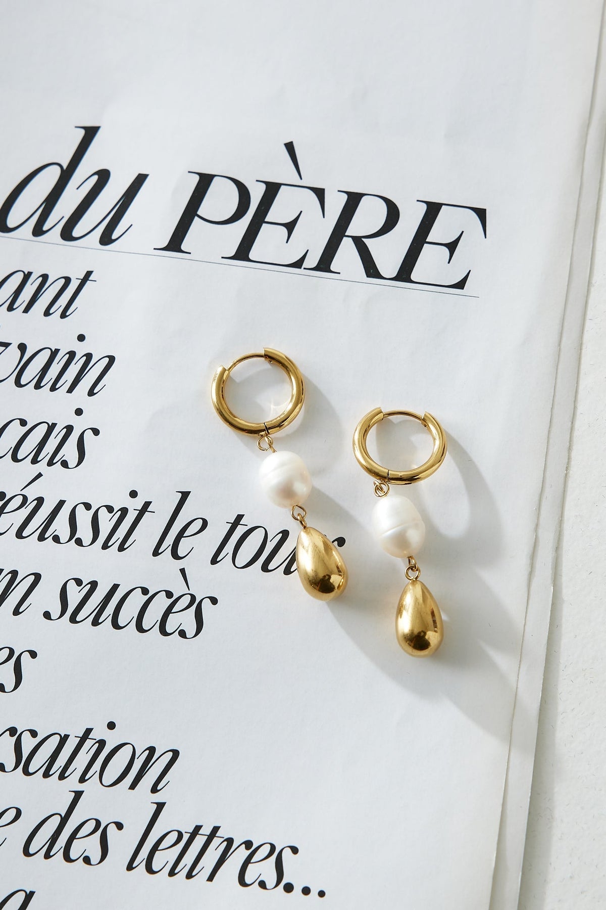 It's giving fashion. girl. The 18k Gold Plated Golden Pearl Earrings feature a small hoop design with a pearl and gold pendant. Style with all your 'fits.
