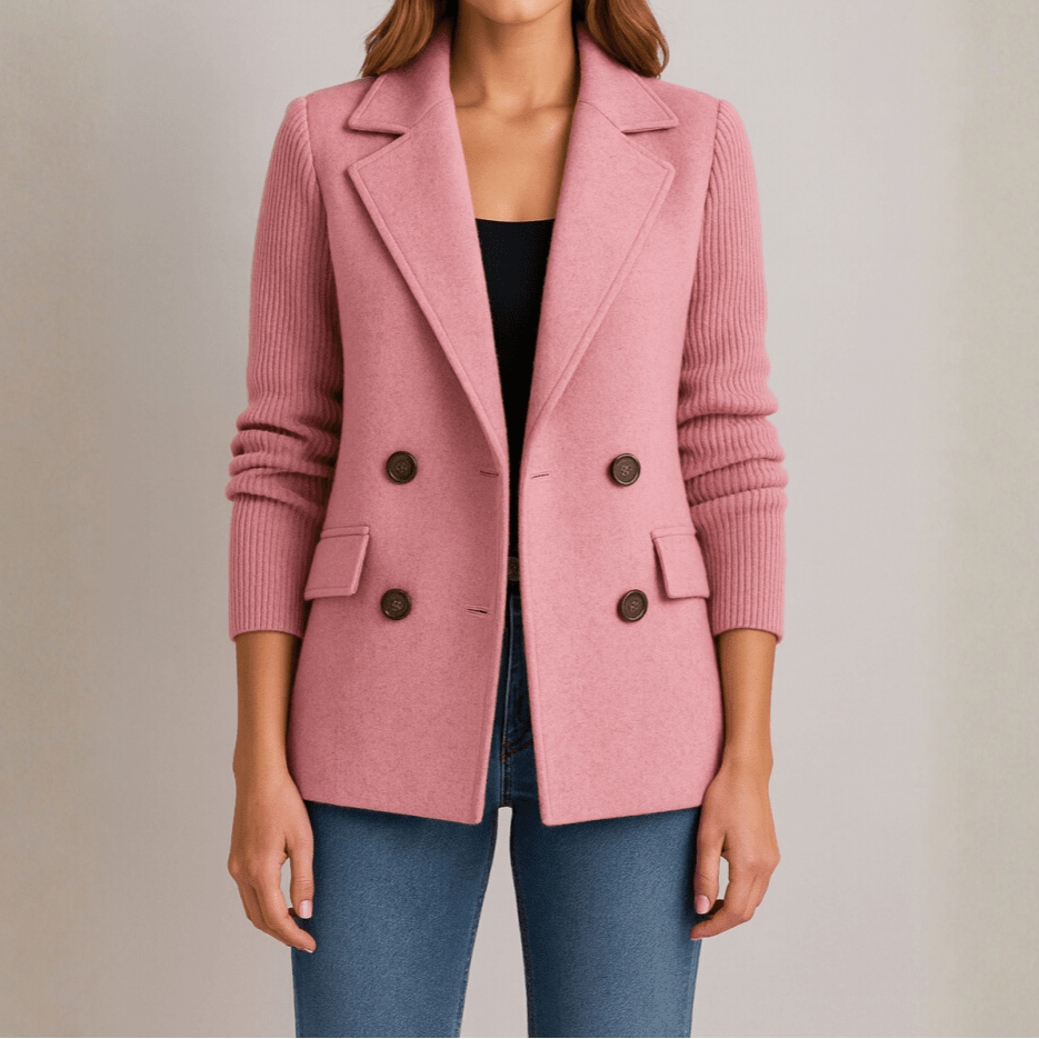 The AmaviraElegant Knit-Sleeve Blazer blends refined tailoring with functional warmth, making it a standout choice for the colder months. Its classic long silhouette and military-inspired details bring sophistication with a confident edge.