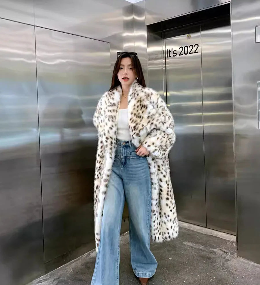 Women's Warm Luxury Leopard Faux Fur Coat